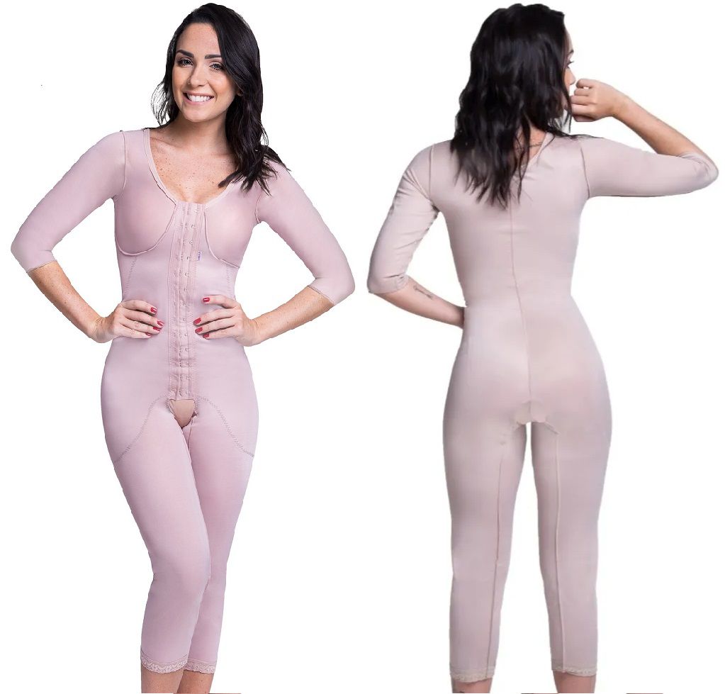 Body Fecho Frontal Cinta Pós Cirúrgica Operatório Abdominoplastia Lipoaspiração Abdômen Flancos Culotes Pernas Braços Com Manga Alta Compressão Body Completo Biobela 1642 - Original
